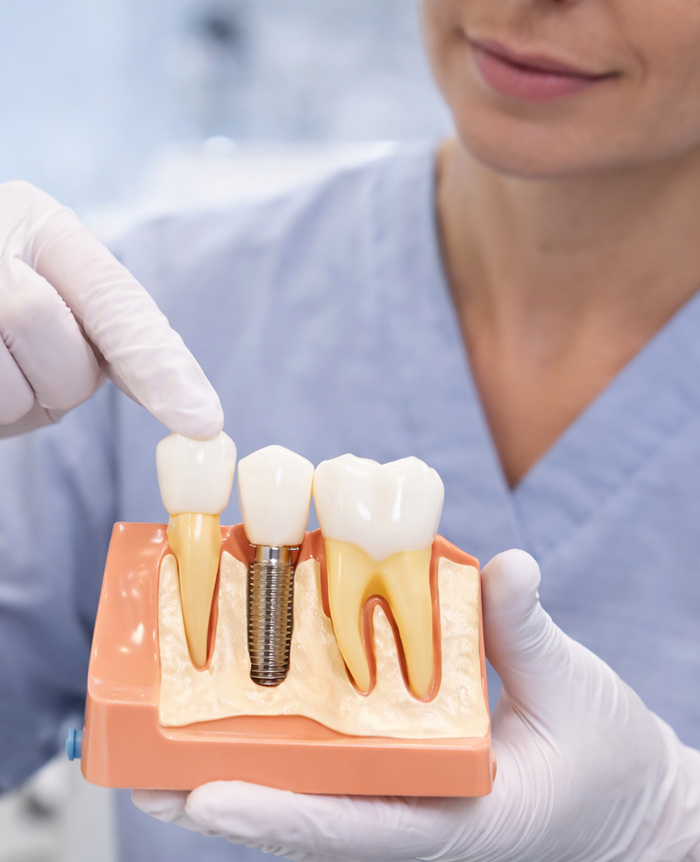 Zahnimplantate sind moderne Lösungen, um fehlende Zähne zu ersetzen. Ein Implantat funktioniert wie eine künstliche Zahnwurzel, die fest im Kiefer verankert ist und sorgt für ein natürliches Kaugefühl und einen guten Erhalt des Kieferknochens. Die Ästhetik gleicht dem natürlichen Zahn und schont die Nachbarzähne